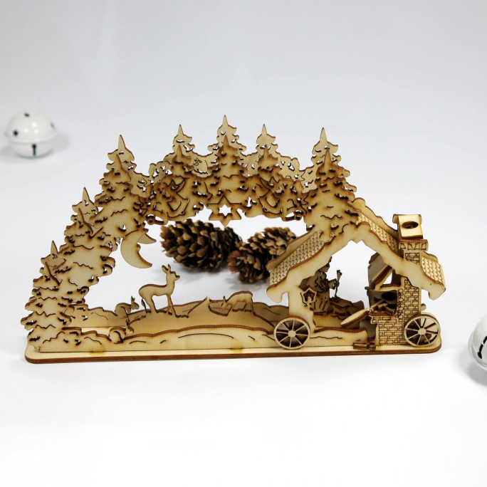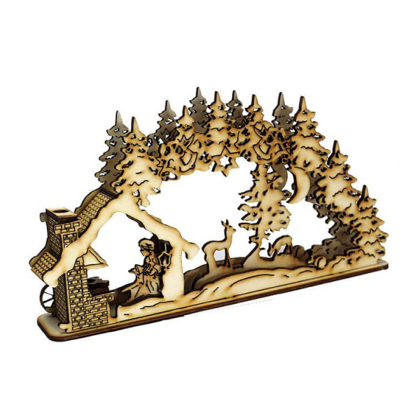 Drvena dekoracija pod nazivom Božićno selo izrađena je od kvalitetne šperploče, te predstavlja idealan božićni poklon. Prikazuje zimsku noć, prirodne motive i ženu pored ognja, a izuzetni detalji daju posebnu vrijednost.