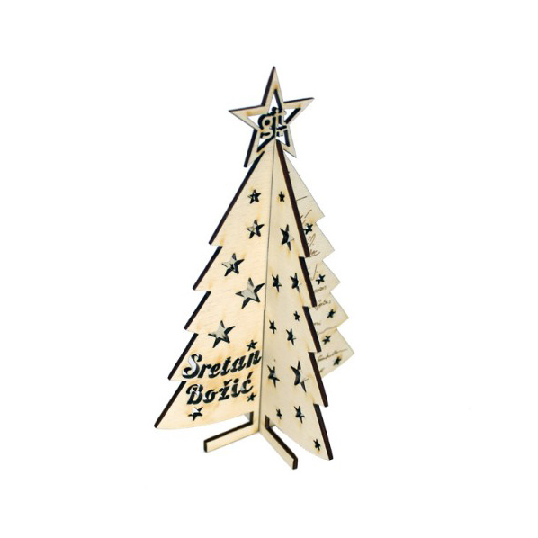 Drvena čestitka – Bor: pripremili smo nekoliko motiva drvenih božićnih čestitki koji ujedno mogu biti dio Vaših jaslica za vrijeme trajanja blagdana i stalan izložbeni primjerak na Vašem stolu koji će Vas podsjećati na sretne blagdane provedene s bližnjima.