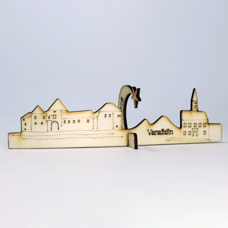 Drvena dekoracija Novogodišnji stalak Varaždin je ručno izrađena dekoracija od kvalitetne šperploče, te predstavlja idealan božićni poklon. Prikazuje motive varaždinskog Starog grada i vijećnice, a izuzetni detalji daju joj posebnu vrijednost. Ovo je idealna božićna dekoracija za Vaš dom, a može biti i poseban poklon.