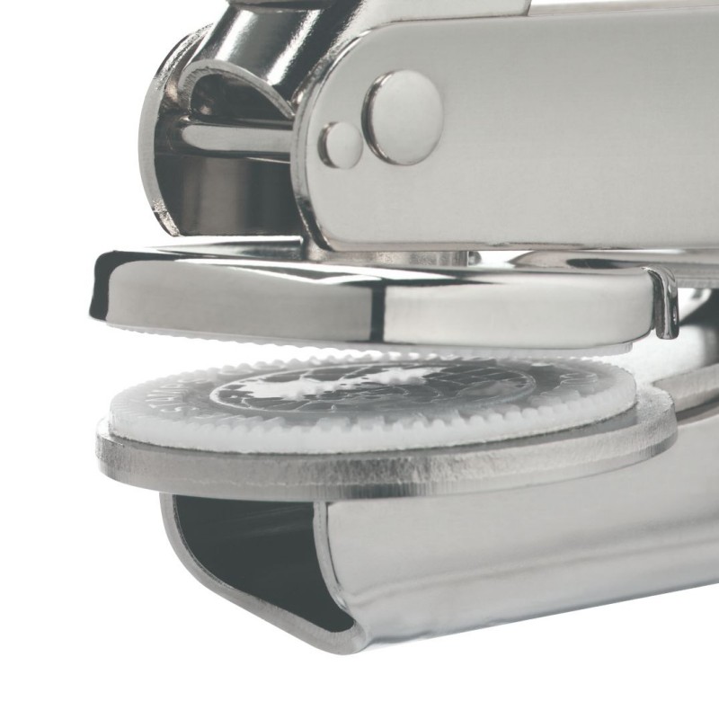 Kliješta za suhi žig generira okrugli reljefni otisak promjera 41 mm. Možete dati vašem pismu, dokumentima ili tiskanoj građi individualnu “notu” ozbiljnosti. Idealni za pozivnice za vjenčanje. Papir ili fini karton izgledaju ozbiljno i jedinstveno.