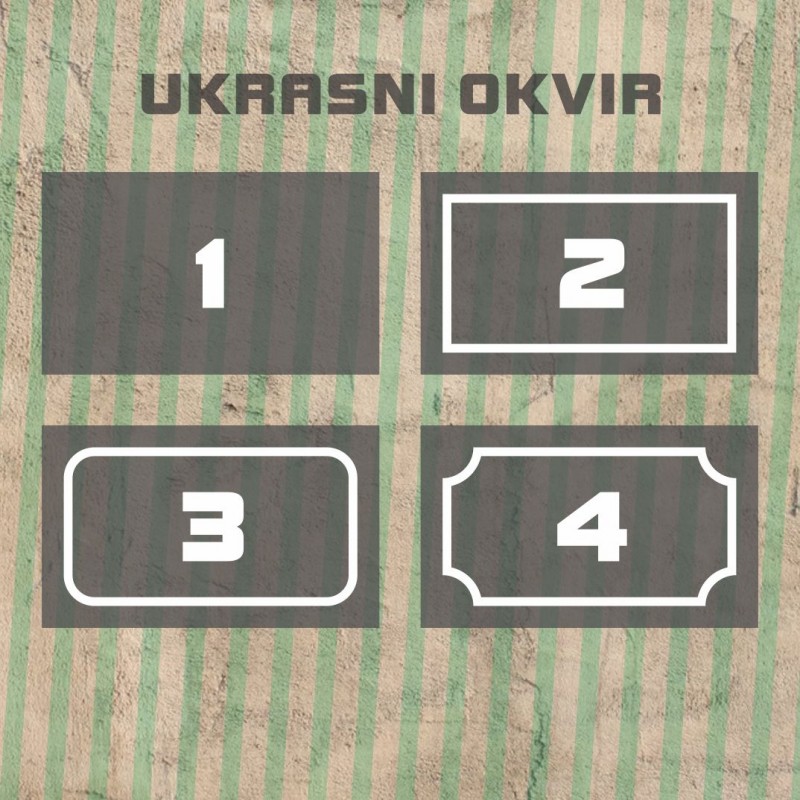 NAPOMENA: Uz naručenu natpisnu tablu se isporučuju vijci ako su kao način postavljanja odabrane rupice (Oznaka 2, 3, 4 i 5)