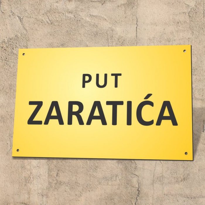 Imena ulica i trgova označavaju se bijelim natpisom imena ulice ili trga na ploči izrađenoj od trajnog materijala veličine najmanje 50 x 30 cm, iste boje za sva naselja na području jedne općine, odnosno za grad koji se nalazi na području dviju ili više općina.