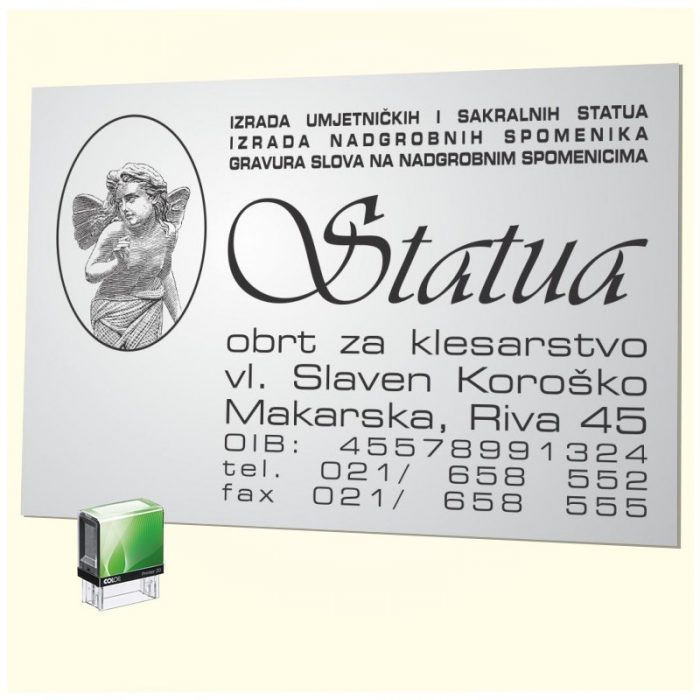 Prilikom otvaranja tvrtke, obrta, udruge i sl. obavezan je pečat i javno izložen natpis. Stoga smo osmislili i ovaj paket u kojem smo ponudili oboje za povoljniju cijenu.