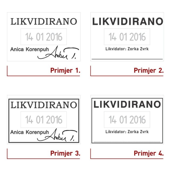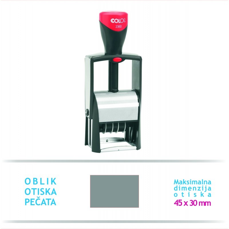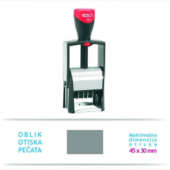 Automat čeličnog okvira, generira pravokutni otisak. Ovaj format je posebno pogodan za pečate za zaprimanje pošte, ubacivanje manjih logotipa, sadrži integrirani datumar.