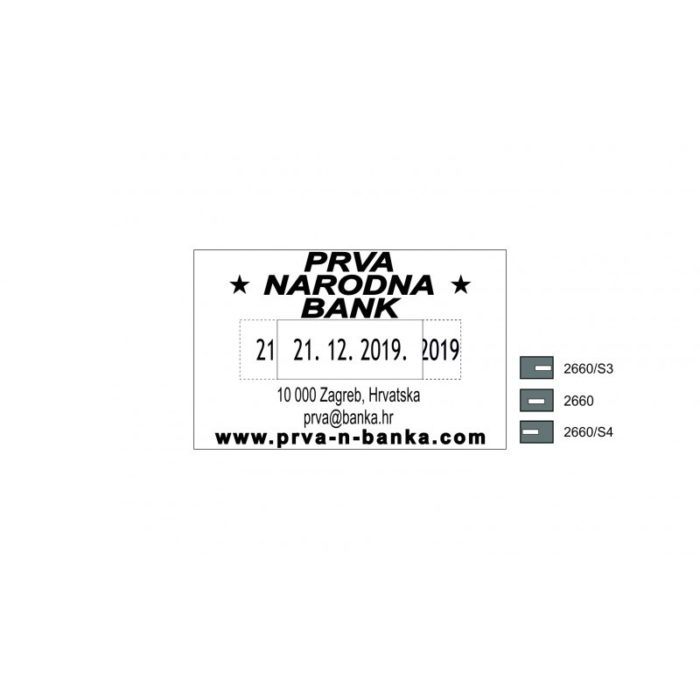 Automat čeličnog okvira, generira pravokutni otisak. Ovaj format je posebno pogodan za pečate za zaprimanje pošte, ubacivanje većih logotipa, sadrži integrirani datumar.