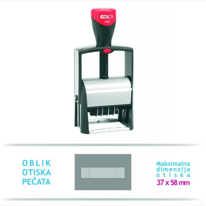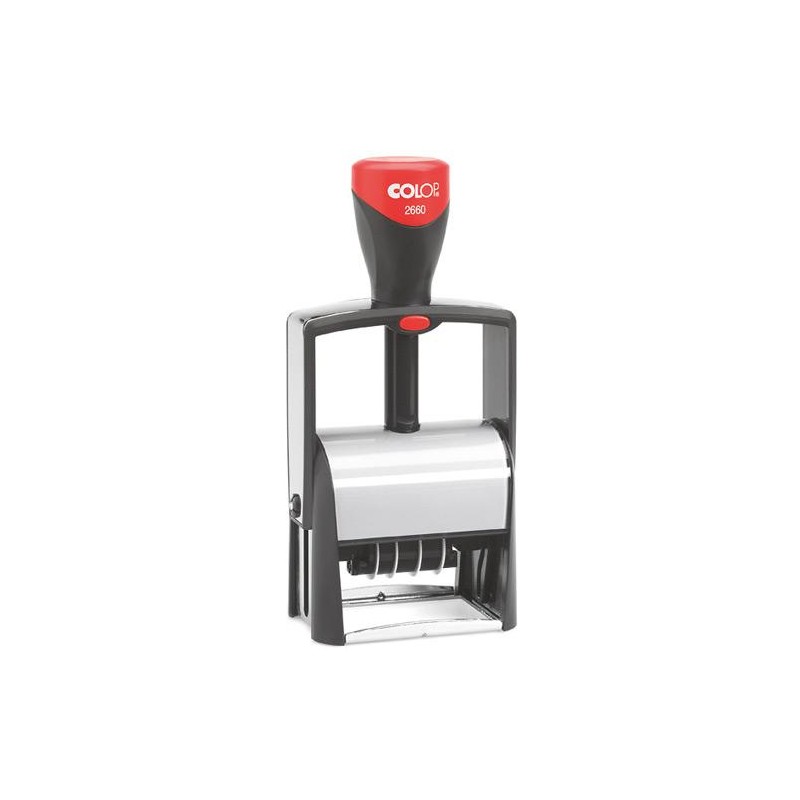 Lagan i malen ali robustan Colop Classic Line 2600 Datumar sa maksimalno 6 redova teksta i integriranim datumarom. Funkcionalni dizajn čini rukovanje s njim vrlo jednostavnim; datum se brzo postavlja s kotačima za podešavanje. Otiskuje datum u strukturi dan – mjesec – godina. Ovaj mali pouzdani partner služit će Vas u uredu, radionici ili na putu.